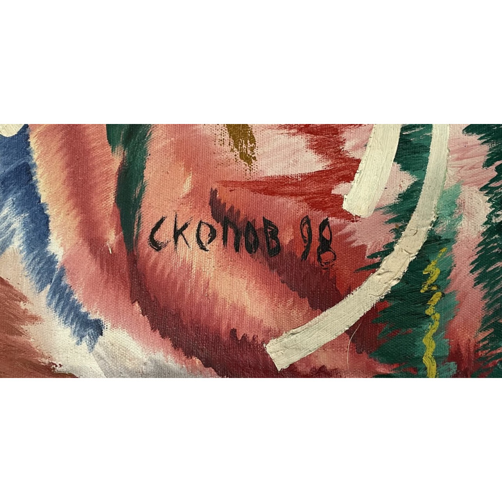 Скопов Юрий Михайлович (1947 - ). Нонконформист. Родился в 1947 году в Егорьевске Московской области. ... В 1974-1979 и 1987-1995 годах работал в студии Э.Белютина. На выставке в Манеже в 1990-91 годах студии “Новая реальность” Министерство культуры СССР приобретает его картину “Одалиска” и командирует автора в США. В 1995 Ю.Скопов, С.Некрасова и А.Крюков организовали группу «Авангардная абстракция».