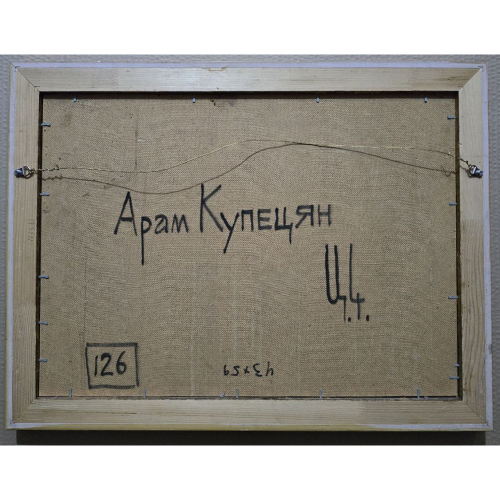 Купецян Арам Авакимович (1928 - 2017). Родился в 1928 г. в г. Прикумске (теперь Буденовск) Ставропольского края. В 1946 г. поступил на художественно-графический факультет Московского педагогического института. В 1952 г. принят в аспирантуру НИИ Академии художеств СССР. С 1952-1954 гг. преподает в средней художественной школе (Лаврушинский пер.). С 1954 г. участник молодежных, всероссийских и всесоюзных выставок. Член МОСХа с 1959 г. В 1957-1988 гг. работал старшим художественным редактором издательства «Советский художник». Любимые жанры: натюрморт, пейзаж, иногда предметные композиции.