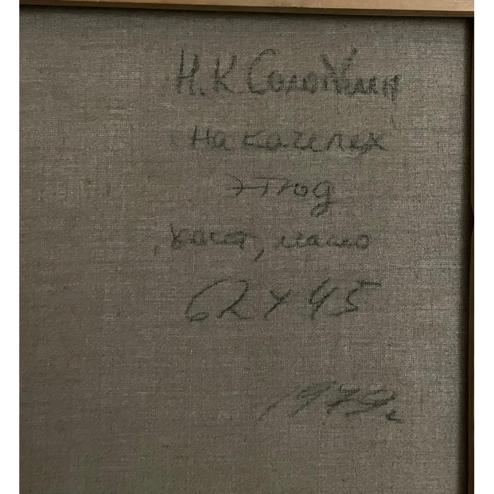 Соломин Николай Константинович (1916, Москва – 1999, Москва). Народный художник РСФСР. В 1936 г. окончил Изо техникум памяти 1905 года, ученик Н.П. Крымова. В дальнейшем учился в МГХИ им. В.И. Сурикова у С.В. Герасимова, Г.Г. Ряжского, М.Ф. Шемякина. Участник выставок с 1950 г. Восстанавливал Севастопольскую панораму Рубо (1954). Талантливый портретист, верный традициям академической живописи, автор многочисленных натурных пейзажей. На протяжении многих лет был членом руководящих организаций МОСХ РСФСР, Союза художников РСФСР и СССР. Выполнял многочисленные государственные заказы на тематические картины, создал портретную галерею своих современников.