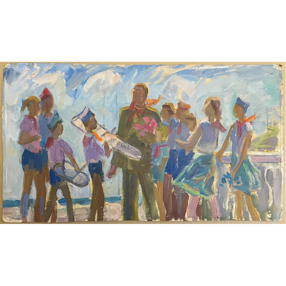 Картина Гагарин в гостях у пионеров, художник Воробьёва Надежда Дмитриевна