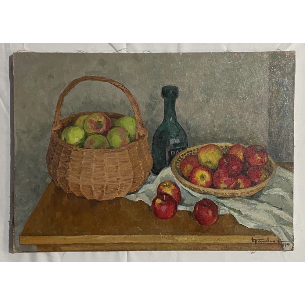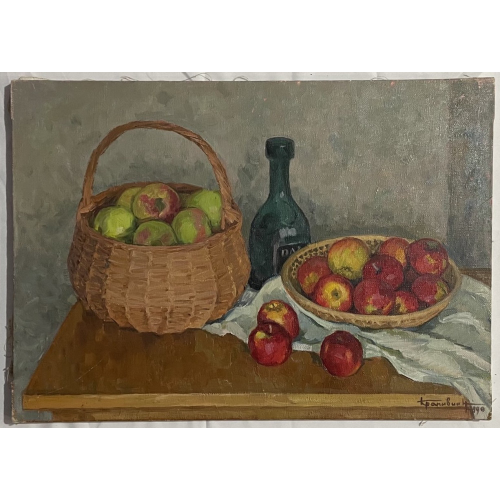 Характеристики: Картина Натюрморт с яблоками в корзине, художник Крапивин Николай Никитич