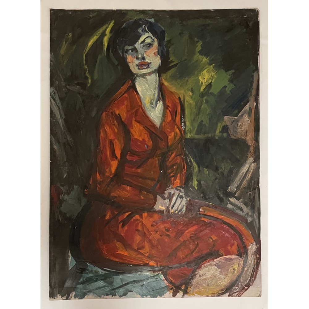 Характеристики: Картина Сидящая девушка в красном, художник Джемаль Джаид Шамильевич